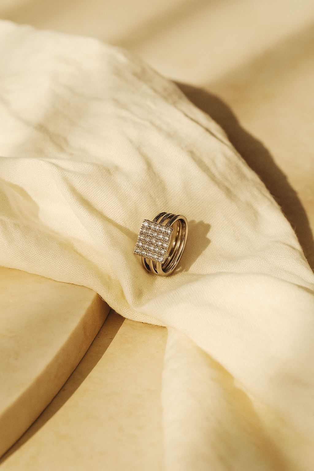 The Dazzle Square Ring is a true symbol of modern elegance and radiant charm. Designed with a sleek triple-band base and a sparkling square top adorned with brilliant stones, it captures light beautifully from every angle. Its adjustable fit ensures perfect comfort, while the shimmering design adds a touch of sophistication to any outfit. Ideal for both casual and formal looks, this ring is your go-to piece for effortless glamour.