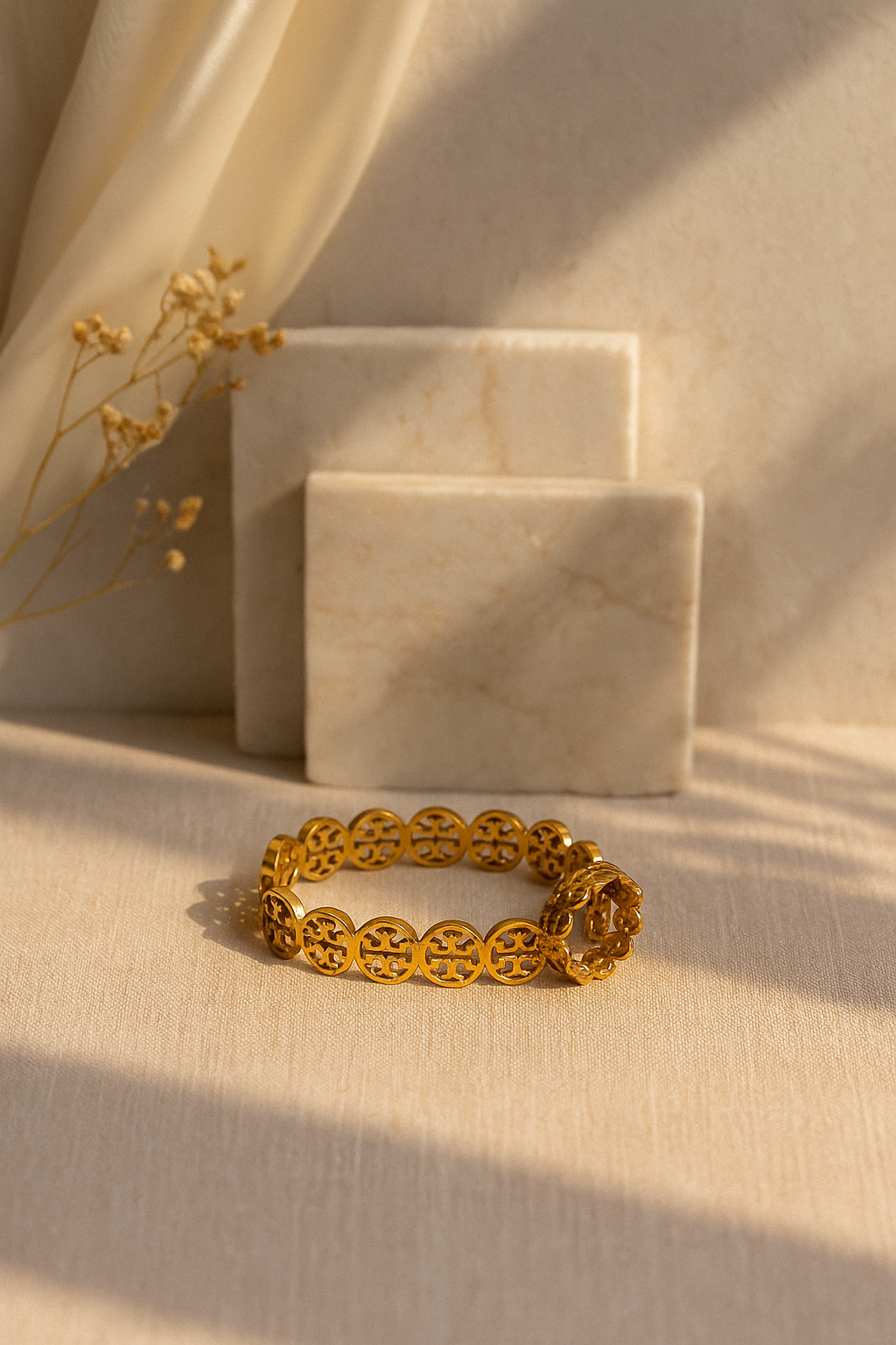 The Regalia Set is a masterpiece of craftsmanship, designed for those who appreciate timeless elegance. This exquisite duo features a meticulously crafted gold bangle paired with a matching ring, both adorned with intricate lattice motifs that symbolize strength and unity. Perfect for special occasions or elevating everyday style, this set is a statement of sophistication and grace.